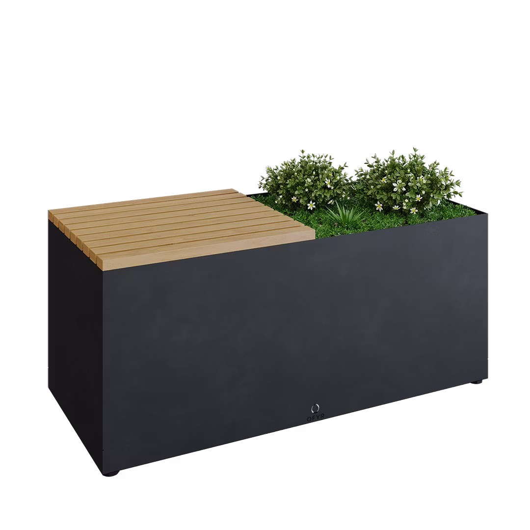 Bygg ett elegant utomhuskök med alla de olika kombinationerna ifrån OFYR, inkluderat denna vackra bänk. Odla dina favoritkryddor samt ha en mysig bänk att sitta på medans man lagar maten. Tillverkat av slitstarkt cortenstål med en sittskiva utav trä.