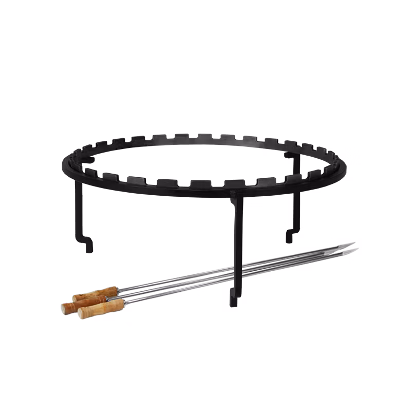 De som tycker om att grilla kommer att älska denna designade ställning med 3 stycken grillspett tillverkade i stål. Den placeras över OFYR elden och höjden gör att man enkelt kan fylla på ved. Denna modell är anpassad till OFYR 100.