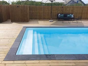 Gaveltrappa Magnelis är framtagen av Gullberg & Jansson för den som vill montera en helgaveltrappa i samband med linerutbyte eller byggnation av ny pool.