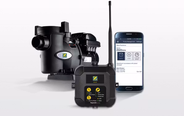 Miljkösmart cirkulationspump från franska Zodiak. Variabel hastighetspump för högsta möjliga energibesparing (enfas). IQpump för fjärrstyrning via smartphone. Denna modell har 1-fas och 1,65 hk.